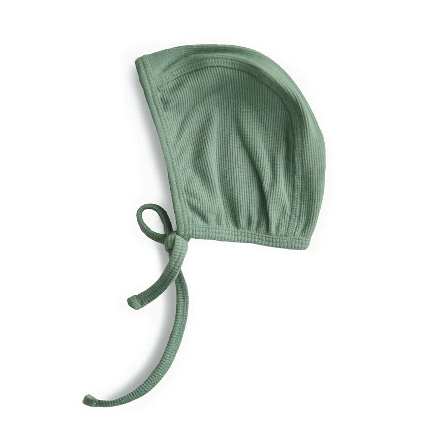 Made with organic cotton, our bonnet surrounds little heads with a soft, rib knit fabric and fully covers the ears for warmth and comfort. With a light stretch and chin-tie design, babies will benefit from the close fit as it stays in place. This bonnet pairs well with our knotted gown.